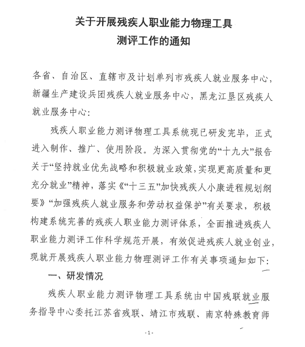 中残联就业指导中心关于开展残疾人职业能力物理工具测评工作的通知